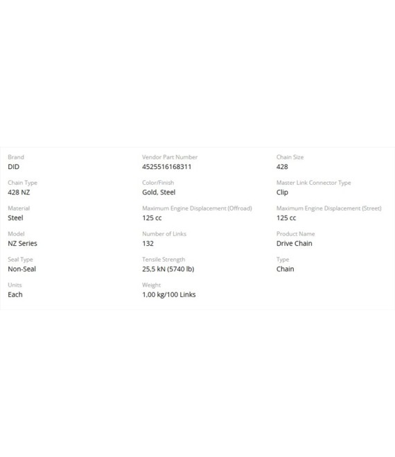 Great for mini and vintage bikes, the 428NZ is a great non-sealed option that will give you greater performance than the OEM non-sealed chain. DHA pin treatment: Hard chromium-carbide layer formed on pin surface.