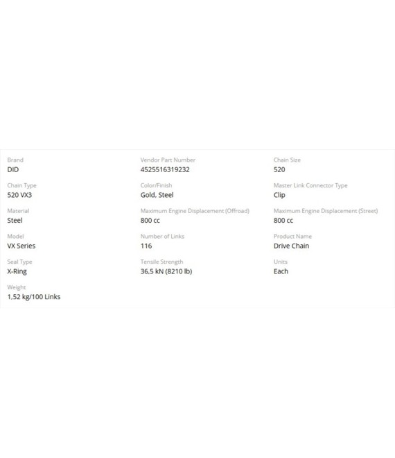 Tags: ΑΛΥΣΙΔΑ, DID, 520, VX3, 116L, SPARE, PARTS