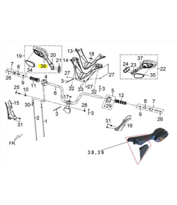 ΚΑΘΡΕΦΤΗΣ ΔΕΞΙΟΣ ΧΩΡΙΣ ΦΛΑΣ ΑΣΠΡΟΣ SYM GTS 250/300