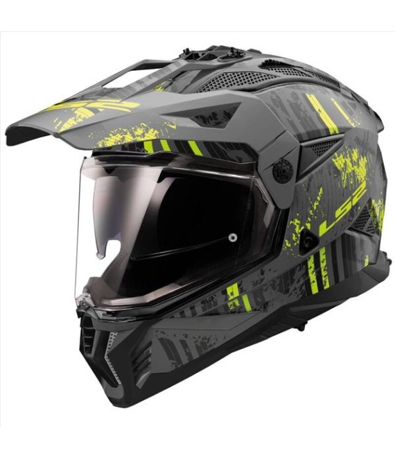 LS2 MX702 PIONEER II CRAZY MATT BLACK GREY H-V YELLOW S